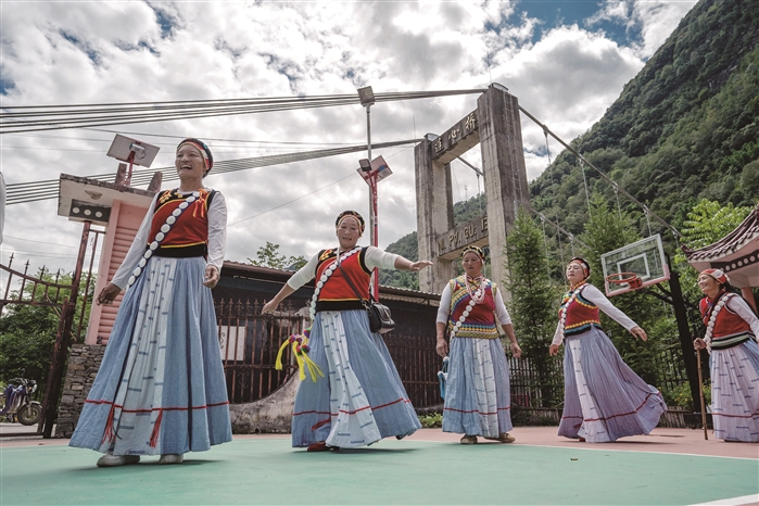 云南省怒江州福贡县石月亮乡拉玛底村村民自发组成的“奋进合唱团”在村委会排练节目(2022年9月14日摄)。2020年,怒江州26.96万贫困人口全部脱贫,249个贫困村全部出列,4个贫困县(市)全部摘帽。 新华社发