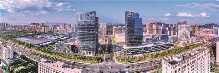 蔚蓝天空下,两栋百米高楼拔地而起,巍峨耸立。锋成科技大楼和瑞凌新能源总部大楼这两栋楼兼具未来感与时尚感,如“双子楼”般交相呼应,成为大成东路沿线的“颜值”担当。陈昌良 樊建威 摄