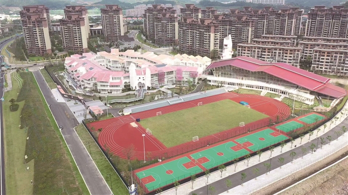 本报讯(记者 沈晓萍 王林威 通讯员 邬贤波)“新校区的投入使用,是溪口中心小学建校百年以来又一次历史性的时刻。”日前,溪口中心小学校长陈军达告诉记者,溪口中心小学在10月31日完成全面搬迁,1421名学生在新校区开启了新的学习生活。 11月1日,记者来到位于溪口镇学行路188号的溪口中心小学新校区,只见一幢幢充满童趣粉白相间的校舍宛如一朵朵绽放的桃花。走进学校,一间间别具风格的教室里书声琅琅。 据悉,溪口中心小学新校区东起校东路,西至新城路,南至弥勒大道绿化带,北至湖山中路。总投资2.2亿元,用地面积49597平方米,总建筑面积35018平方米,设有教室48间,并配有创新实验室、生命科学实验室、无人机实验室、茶艺室等36间功能室。“我们学校是排球特色学校,所以学校内的大型室内排球馆也是新校区的一个亮点,馆内设有主、副两个场馆,适用不同形式的排球课程及赛事。”该校教师汪静儿介绍道。 “学校是由中国美术学院风景建筑设计研究总院有限公司设计,在设计建设中,秉承‘童话的世界’‘盛境的再现’‘差异的世界’等理念,采用灵活、灵动、灵巧的布局,为孩子们构建了一个寓教于乐的‘成长乐园’。”陈军达介绍,校园整体风格独特,连廊庭院、小桥流水,人文自然和谐共融,并将桃花元素融入其中,是一所符合溪口情怀的定制式校园。日后,学校将继续秉承“剡源清流 行远至善”的校训,以发展的理念统筹办学方向,踔厉奋发、再创佳绩。