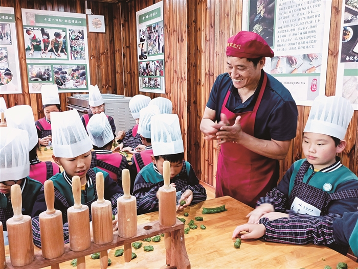 本报讯(记者 王林威 通讯员 乌雯雯 董驻)近日,武岭小学的“五灵手作”非遗文化传承暨劳动实践共建基地邀请市非遗文化遗产(溪口千层饼制作技艺)代表性传承人、蒋家龙门千层饼负责人蒋定君,为学生授课,讲述溪口千层饼的发展历史,传授揉粉、搓馅、擀皮、烘烤等制饼手艺。