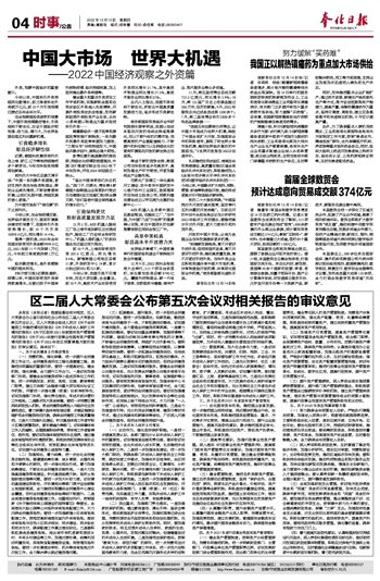 区二届人大常委会公布第五次会议对相关报告的审议意见