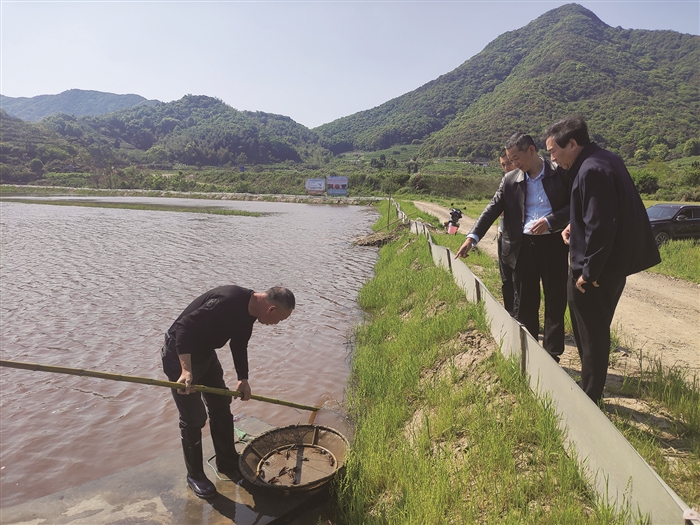 通讯员 吴侃侃 毛杭军 近日,区农技总站站长竺尧方带队前往裘村镇石盆村,察看小龙虾稻田综合养殖示范基地情况。 该基地于4月中下旬分两批购入共1000公斤小龙虾,放养于50亩提前挖好虾沟、设置好防逃围栏的水稻田中。目前小龙虾生长健康,体格健壮有活力,到5月下旬可以起捕出售,预计产量可达75公斤/亩。我区计划于5月底6月初召开技术观摩现场会,面向全区种养大户推广,为全区稻渔综合种养起到示范作用。 近年来,我区依托良好的生态环境和丰富的土地资源,围绕小龙虾优势特色产业,积极探索生态立体种养新模式。“稻虾轮作”立体种养模式是一项依托良好的生态环境和丰富的土地资源,围绕小龙虾优势的特色产业。“稻虾轮作”具体操作是把水稻种植和水产养殖产业结合,上半年养殖龙虾、下半年种植水稻,稻子收割后害虫还在虫卵和幼虫阶段就成为小龙虾的饵料,而小龙虾排出的粪便,又可以为此后种植水稻提供肥料,不施化肥、不喷农药,形成一种优势互补的生物链,实现“渔肥稻香、一水多用、一田多收”。后期通过产销一体化经营、品牌化运作,延伸产业链、提升价值链、拓宽收益链,必能为促进农业增效、农民增收,持续推进乡村振兴注入持久动能。 据了解,“稻虾轮作”综合养殖技术在湖州、嘉兴获得大力推广和支持,亩均效益可达万元,已作为我省稳定粮食生产,实现经济、生态和社会效益共赢,促进农渔业绿色发展的重要工作。该技术既能解决冬季土地抛荒问题,又能提高土地利用率和亩均收益,有效提升农户的种粮积极性,实现经济效益和生态效益的共赢。