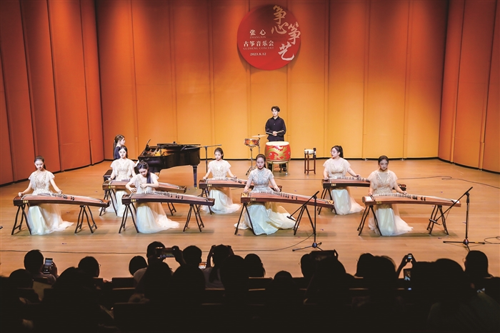 本报讯(记者 赵雪雁 单晓峰)筝音或潺潺如流水,千变万化而不穷;或如将军驰骋战场,气势万千,一弦一柱倾尽相思华年……8月12日晚,由区音乐家协会主办的“筝心筝艺——张心古筝音乐会”在区城市文化中心音乐厅拉开帷幕。 音乐会在气势磅礴的中国古筝十大名家名曲之一《战台风》中拉开帷幕,气魄雄浑、韵味浓郁的演奏牢牢吸引了听众,展现出演奏者张心的技术造诣。紧接着,古筝与钢琴二重奏《望秦川》《定风波》、古筝与板鼓合奏《汉江韵》、古筝独奏及合奏《将军令》《林泉》等一一上演,或空灵婉转,或典雅古朴,或悠扬潇洒,或荡气回肠。音乐会现场,听众们沉浸在古筝演奏中,感受着传统乐器的无限魅力。一曲终了,掌声雷动。 据了解,本次音乐会的演奏者张心曾荣获2022年中国音乐小金钟奖古筝比赛浙江赛区金奖、2023“浙音”青少年艺术节总决赛评委会大奖等多项荣誉,是古筝领域冉冉升起的一颗新星。“很高兴回到家乡演出,和众多优秀的古筝演奏者,还有其他乐器老师一起表演交流。奉化的音乐和艺术氛围很浓,希望以后有更多机会和奉化的音乐爱好者、古筝爱好者沟通。”张心说道。 奉化培育了一代又一代的音乐人,将更多优秀音乐人才“送出去”的同时,也通过“请回来”激活奉化音乐池水,让奉化的艺术氛围更浓。