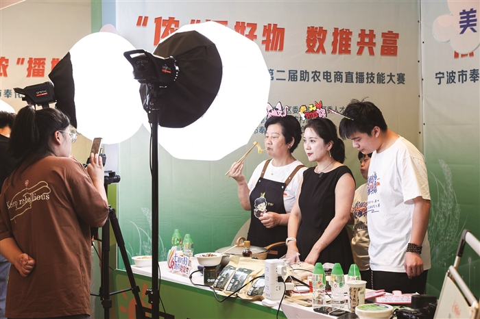 本报讯(记者 严梓宁 单晓峰)8月12日,第二届“‘侬’播好物 数推共富”农村电商直播大赛落下帷幕。参赛队伍充分发挥自身优势,通过边赛边卖的方式,讲好奉化故事,推广地产好货。据悉,比赛期间,参赛队伍累计销售单数7321单,总销售金额达71万余元。 “奉化水蜜桃香甜可口,皮薄多汁,保证你吃上一口就忘不了……”当天下午,在直播大赛现场,参赛队伍带着本地特色农产品,生动又通俗的讲解吸引众多网友在线下单。溪口参赛队选手王海永告诉记者,自己是土生土长的溪口人,家乡好山好水孕育出好的农产品,在此次直播大赛上,自己能代表家乡溪口做农产品代言人,非常自豪。 据悉,第二届“‘侬’播好物 数推共富”农村电商直播大赛吸引全区各镇(街道)15支队伍报名参加。经过层层选拔,最终,大堰2队获得团队奖一等奖,西坞队获得最佳台风奖,裘村队获得最佳人气奖,莼湖队获得最佳口才奖,锦屏队获得“销售小能手”称号,优秀组织奖获得者为尚田街道、萧王庙街道和溪口镇。 “我们希望通过大赛,挖掘一批本土带货达人,打造一支地产农产品销售电商的先锋队,更好地宣传奉化,推介奉化本地农产品,从而助力乡村振兴、共同富裕。”区农业农村局副局长范亚珠表示。