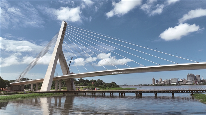 由中国路桥工程有限责任公司(中国路桥)承建的科特迪瓦经济首都阿比让科科迪斜拉桥项目12日竣工通车。科科迪桥项目主线总长约1.63公里,其中主桥为钢槽梁单塔斜拉形式,全长630米、主跨长200米、主塔高108.6米。 新华社发