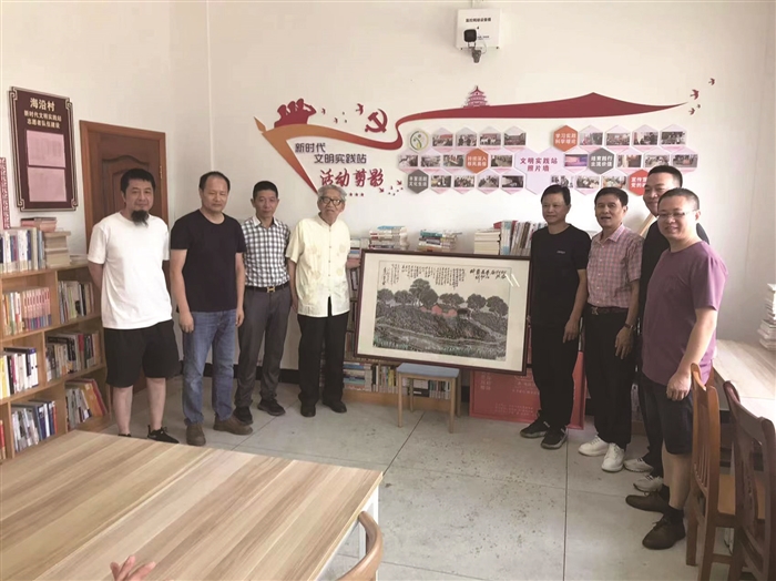 “我要把这幅中国画捐赠给家乡海沿村党总支。”近日,93岁的老人李美杰回到家乡松岙镇海沿村,将自己精心创作的中国画《松岙灯头庙——奉化暴动策划地》捐赠给海沿村党总支。 李美杰是中国老年书画研究院研究员、浙江美术教育研究会会员、宁波市美术家协会会员、奉化锦溪书画院名誉副院长。《松岙灯头庙——奉化暴动策划地》是李美杰的代表作,经过2年时间构思、3次实地写生,于2018年精心创作而成。李美杰说,松岙是宁波市第一个农村党支部成立地,灯头庙又是奉化暴动策划地,这幅画最好的归宿就是家乡海沿村党总支。 通讯员 李贤君
