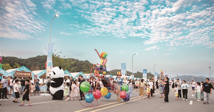 本报讯(记者 赵雪雁 单晓峰 司徒青 通讯员 王璐)花好月圆日,“双节”迎亚运。中秋、国庆“双节”期间,奉化文化旅游热度不断走高,文旅产品供给多样丰富,乘着亚运东风,中秋国庆特色活动异彩纷呈,各大景区景点人气爆棚。据统计,9月29日至10月6日,全区主要景区共接待游客83.93万人次,同比增长60.8%,实现营业收入2221.69万元,同比增长39.8%,其中溪口-滕头景区累计接待游客62.49万人次,黄贤森林公园累计接待游客16.77万人次。 节假日期间,各大景区景点推出一系列丰富多彩的文旅活动以飨游客。黄贤森林公园组织魔术表演、月饼迎客、古装巡游、后备箱集市等主题活动,中林·商量岗旅游度假区开展国潮露营节,滨海旅游度假区举办首届宁波湾沙雕艺术节等,各具特色的文旅“佳肴”吸引着周边地区游客来奉体验山海风情。乡村旅游同样亮点纷呈,位于大堰镇的箭岭环境学习中心以丰富的研学课程打造乡村旅游“爆款”,西坞街道万亩方“数智农田”构建粮田美景,成为网红打卡地,燕来山田、连山非宿等乡村民宿开展中秋文化体验活动,节日氛围浓郁。 中秋、国庆超级黄金周恰逢亚运盛会,“亚运风”吹起“运动潮”。宁波滨海旅游度假区借助水上项目、沙滩活动、体育赛事活动点燃全民运动热情。同时,区城市文化中心举办了为期8天的迎亚运文旅促消费活动,持续释放亚运红利和文旅消费活力。此外,奉化博物馆、区文化馆、区图书馆等文化场所推出多项展览、展演、手工制作、非遗体验、讲座等活动,奉化博物馆景区已经成为居民日常生活、休闲消费、文化熏陶的重要场所,是来奉游客必行的观光打卡地。据统计,节假日期间,奉化博物馆景区累计接待市民游客1.89万人次。节假日期间,全区各景区(点)和乡村旅游点游览秩序保持良好,未发生旅游安全事故。