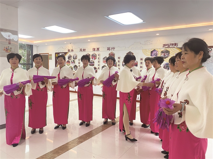 记者 王巧丽 虞金辉 旗袍的古朴典雅、温婉端庄之美,诠释了中国传统服饰的独特魅力和文化韵味,深得广大女性喜爱。走进金钟未来社区的邻里文化中心,孙亚儿与旗袍队的队员正在有序排练,绣着绿色枝芽的玫红色旗袍,衬得她们身姿婀娜;轻盈自信的步伐配合着悠扬动听的音乐,举手投足,尽显优雅。 “最重要的是大家都开心,有事做,生活很有意义。”孙亚儿告诉记者,退休后看到身边很多人跟她一样,孙子孙女上学了,一等就是一整天,于是想组建一支社区自己的文艺团队,让兴趣相投的姐妹们的退休生活活跃起来。她的想法得到了社区里许多同龄人的响应,十几人的旗袍队很快组建了起来。最让孙亚儿欣慰的是,许多队员从进队时的不自信,变得越来越开朗,精气神越来越足。“亚儿总是给大家很多鼓励和帮助,我们的旗袍队变得很团结,氛围很和睦。”队员陈竹青说道。 有了这份热爱,也有了队员们的互相陪伴,旗袍队的走秀越来越得心应手。她们活跃在社区的各种舞台上,随着“露脸”机会增多,许多其他社区的演出邀约也纷至沓来。“听到去表演,大家都很积极。我们要让更多的人知道,退休后也能很美,也能活得多姿多彩!”孙亚儿笑道。 喜欢穿美丽的旗袍,更喜欢穿代表志愿者身份的“红马甲”,提起孙亚儿,社区里的人都说她古道热肠,热心公益。自从8年前组建了金浪花志愿者团队,在每个月15日和28日的志愿者活动日,社区里都有她奔走忙碌的身影。“我的背后,是家人的支持。他们理解我,孩子以我为榜样,给我带来了很大的底气。”孙亚儿坦言,虽然时常觉得亏欠家人,但没有“大家”的平安,就没有“小家”的温暖。 在孙亚儿以身作则的榜样行为影响下,旗袍队的成员也纷纷加入志愿队伍,如今的“金浪花”已发展成一支近50人的志愿者队伍。他们参与社区基层自治的方方面面,以“星星之火”点燃了社区居民自治的热情。