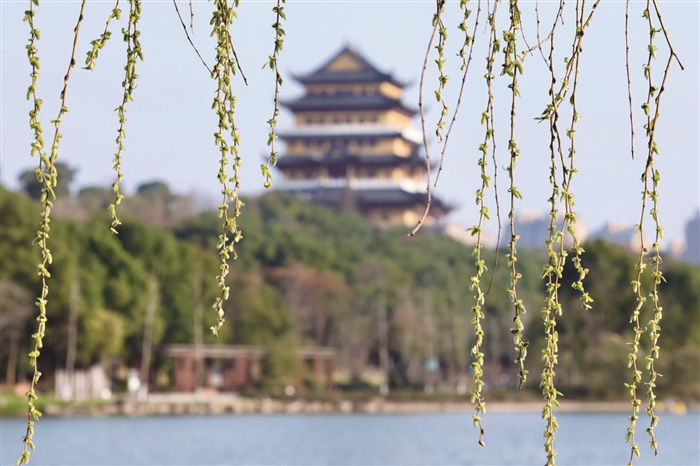近日,我区入春进程明显,奉城大地,生机盎然,处处洋溢着春天的气息。仁湖公园内,湖边的垂柳已悄然换上新装,嫩绿的枝条轻拂湖面,带起一圈圈涟漪。微风吹过,柳枝轻轻摇曳,嫩芽也随之轻轻颤动,仿佛在向每一个经过的行人诉说着春天的故事。记者 孙嘉阳 樊建威