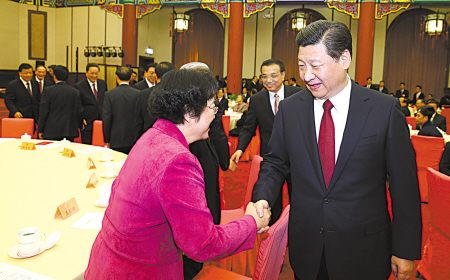 | 习近平等在茶话会上同与会人士亲切交谈。(新华社发) |