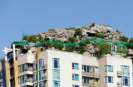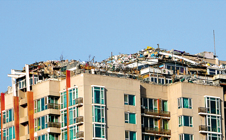 12月31日,被称为北京“最牛违建”的海淀区人济山庄小区B栋“楼顶别墅”主体已被拆除,楼顶原貌显露,工人们仍在清理违建剩余的建筑垃圾。