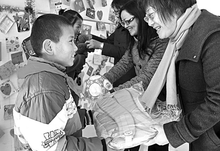 前天下午,江北区慈城镇古巷社区联合辖区内城东服务站、综合执法局、中城小学、卫生服务中心等单位的党员代表,带着一批学习用品到该镇普迪学校,分送给221名外来娃,圆了他们一个月前提出的“微心愿”。(黄利军 胡建华 刘平 摄)