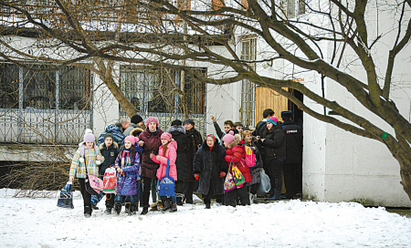 2月3日,在俄罗斯首都莫斯科,发生人质劫持事件学校的学生离开教学楼。
