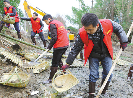 | 图为宁海青年志愿者在梅林街道九顷洋村参加“治水清污”活动。(陈云松 周武军 摄) |