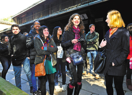 昨天,宁波诺丁汉大学35名国际留学生以一次“宁波历史文化游”开始了他们在甬的留学生活。这批留学生前天才完成报到,将进行一个学期的学习生活。目前,宁波诺丁汉大学外籍学生总数已达591人,占全校学生总数的近10%。图为昨天上午留学生在参观天一阁。(严龙 胡敏 摄)