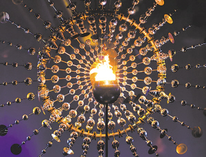 ▲8月5日,开幕式上主火炬被点燃。 (新华社记者 孟永民 摄) |