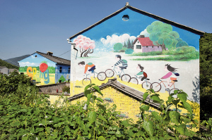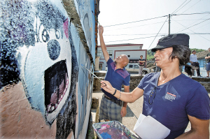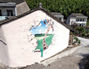 一个旅游资源短缺、经济基础薄弱、特色产业更无从谈起的普通山村,靠什么来推动当地经济的发展、改变贫穷落后的现状?奉化市尚田镇王家岭村给出的答案是:打造3D动漫“童画村”。 破壁而出的长颈鹿、憨态可掬的卡通熊、机灵活泼的小黄人……经过前期外出考察取经和2个多月的设计、绘制,如今在王家岭村公路两侧,十几幅作品已基本创作完成。 “我们计划投资40多万元,将有条件的农房外墙全部画上卡通壁画,”该村党支部书记王光辉介绍,“把缺乏自然资源的王家岭村打造成为宁波首个动漫‘童画村’,为推动新农村建设寻找出一条与众不同的发展之路。” “这是一次意义非凡的艺术创作体验,”担任主创的奉化当地画家袁吉伟说,“‘童画村’的设计理念十分独特,但要将数十幅作品在一个村的范围内完美呈现,就要巧妙地将艺术构思与村里的地形地貌、建筑结构甚至外墙物体融为一体。” “到本月底,一期创作将告一个段落,欢迎市民朋友带着孩子,到村里来看看动画片里的大明星。”王光辉说,除了卡通壁画,王家岭村良好的生态环境和特色农产品也一定会给游客留下深刻印象。 (严龙 王加廷 文/摄)
