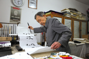 85岁的沈元魁每天挥毫不辍,笔力依然雄健。(叶向群2016年10月14日摄于沈元魁先生家中) |