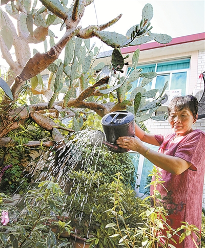 | 吕邦成家的这株仙人掌已种了20多年,整个院子的花草、盆景与仙人掌相得益彰,获评掌王庭院。 |