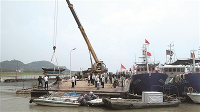 | “三无”船被扣押上岸。(余建文 曾钢 摄) |