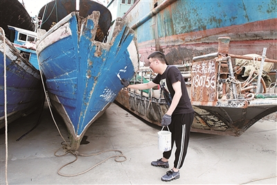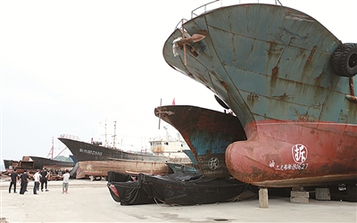 | 等待拆解的“三无”船。(余建文 朱妍 摄) |
