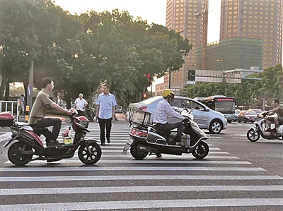 | 中山西路与丽园北路交叉口,行人闯红灯。(林雅菁 摄) |