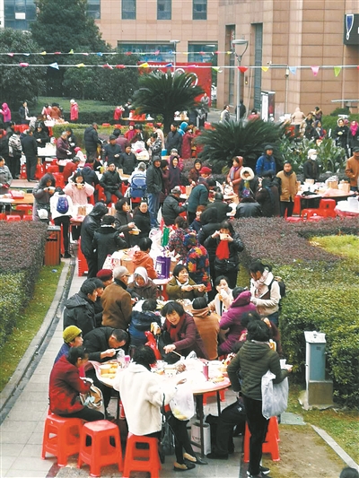 本报讯(记者朱军备 通讯员潘维维)昨天,鄞州区福明街道新源社区的新天地东区广场上热火朝天,500多名居民围坐在50张桌子旁,边吃着点心边观看文艺演出,还参与了一场爱心拍卖活动,共度欢乐祥和的“邻里感恩节”。 上午9时30分,广场上已聚集了500多名居民,大家拿出各自家中的糕点、水果,摆出一桌桌丰盛的宴席,供邻居们品尝。今年,社区为每桌准备了炒年糕、炒面、酒酿圆子、窝窝头四个热气腾腾的点心,还邀请专业文艺团队为居民表演魔术、甬剧、小品等节目。居民们边欣赏节目,边品茶香、吃汤圆,一时间暖意融融。68岁的丁大爷说:“我年年都来参加邻里节,居民们能一起热闹地聚聚,很高兴。” 今年“邻里感恩节”还增加了慈善拍卖环节,东海银行、华东物资城、富衡泰贸易公司三家企业提供了羽绒被、养生茶壶、机器人扫地机等拍卖品,最终共拍得善款4647元,将全部用于助困、助残等慈善事业。 据了解,新源社区自2009年12月12日在全市首创“邻里感恩节”后,一直坚持将感恩文化引入社区建设。10年来,该社区以“邻里感恩宴”为载体,先后在小区建起感恩诗亭、感恩教育室、感恩文化园等景观,发动居民种下一片“感恩林”。 社区党委书记邓锦云说,这些年参与活动的人越来越多,在浓厚的感恩文化熏陶下,邻里之间隔阂少了,理解沟通多了;家庭不和少了,尊老爱幼多了。如今,感恩已成为居民共同遵循的价值观,涌现出一批感恩之星。社区也先后获得省、市文明社区等荣誉称号。 右图为邻里感恩节现场。 (朱军备 潘维维 摄)