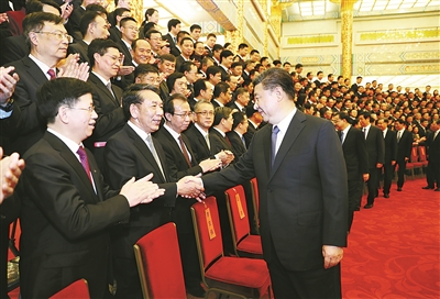 2月20日,党和国家领导人习近平、李克强、栗战书、汪洋、王沪宁、赵乐际、韩正等在北京人民大会堂会见探月工程嫦娥四号任务参研参试人员代表。(新华社发) |