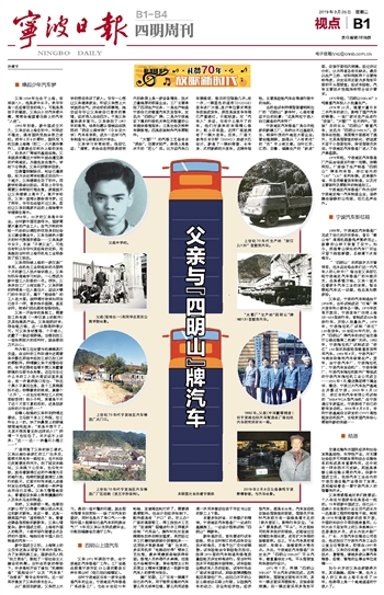 孙建宁 ■ 缘起少年汽车梦 父亲1934年出生于上海,有弟妹7人,他是家中长子。我爷爷是一名经营百货的商人。可能是男孩子的缘故,父亲从小对汽车感兴趣,常常会凝望着马路上的汽车“入迷”。 1950年初春,新中国成立不久,父亲正在上海念初中,时局还不稳定,偶有国民党残余势力进犯。那年2月6日零时,国民党飞机空袭上海滩(即二·六大轰炸事件),主要袭击目标为上海的发电厂、自来水厂等城市基础设施。父亲就读的震旦大学附中就在遭空袭的沪南地区。为避免发生意外,学校下令停课,父亲只好辍学回家。 空袭警报解除后,校址已遭损毁,校方决定将学校搬迁到另外一个地方,父亲继续念完了初中。因新学校路途比较远,再加上爷爷也需要父亲帮助打理生意,家里就不让父亲继续上高中了。离开学校后,父亲一直难以割舍读书梦。过了两年,爷爷实在拗不过父亲,答应让父亲到离家不远的上海培青中学继续念高中。 1956年,22岁的父亲高中毕业。当时新中国百废待兴,国家需要大量的产业工人。血气方刚的年轻一代纷纷以满腔热忱投身到社会主义建设事业中,父亲也被热火朝天的时代氛围所感染……父亲是家中长子,本该“子承父业”,可他没有听从爷爷叫其经商的安排,而是跑到当时的上海市机电工业局参加了招工报名。 父亲很快被上海的一家仪表厂录用。在机电工业局组织的为期两个月的新工人技术培训班上,父亲如饥似渴地学习知识,一心想成为新中国工人阶级的一员。很快,父亲来到工厂上岗实践了。父亲所跟的师傅是一位人高马大、说话大嗓门的中年汉子,属于“粗线条”的工人老大哥。该师傅对徒弟如同自己孩子一样,喜欢指手画脚,甚至训斥,徒弟们因此都有些惧怕他。 父亲一开始学的是钳工,需要加工热电偶(一种仪表上的配件)及其他模具产品。父亲聪明好学,领会能力强,这一点颇得师傅认可。可父亲身材瘦弱、个子矮小,还戴了一副近视眼镜。当碰到加工一些体积较大的活件时,就会感到力不从心。 作为钳工注定要与机械模具打交道,在当时的工作环境中还需要亲手搬扛那些未经加工或已加工好的零配件。师傅嫌父亲干活慢吞吞的,似乎还颇有些看不惯父亲戴着眼镜的白面书生形象。这位没念过什么书的工人老大哥说话直来直去,有一次竟然脱口而出:“你这个臭小子真没出息,连个工具箱都拎不动;你哪像我的徒弟,真像个‘小开’,一点也没有阿拉工人的吃苦耐劳样!你小子呵,我看是干不了这个又苦又累的活的,还是回家当你的少爷去吧……” 自尊心极强的父亲听到师傅这番话,立马脱下身上工作服,往工作台上一扔,扶了扶鼻梁上的眼镜愤愤地吼起来:“我是不想干了,尤其不想再看见你这样的人!”师傅一下也怔住了,半天说不上话来:“这……这……侬叠只小瘪三……” 厂里同意了父亲的辞工请求。父亲从地处徐家汇的工厂出来后,搭乘无轨电车一路往北,也不知自己究竟要走向何方。到了延安东路站,父亲跳下公交车,也没吃中饭,就沿着黄浦江边的外滩漫无目的地行走。他倚栏眺望黄浦江上航行的船只,江面不时传来船儿进港时发出的鸣笛声,仿佛有一种声音在向自己召唤。父亲又慢慢地回头,看着延安东路上熙熙攘攘的行人及车水马龙的街道。 突然,父亲眼前一亮。他看到大新公司门口停着一辆以前从未见过的新式轿车。走近一看,这是一辆美国产的“道奇顺风”车。看着这辆造型别致的新款车,父亲心情复杂。新中国成立前,上海有外国人的租界,十里洋场行驶着各式各样的外国车,唯独没有中国人自己制造的汽车…… 新中国成立之初,上海街上的公交车还是以前留下来的外国车。为了发展民族工业,国家动员人民“自力更生”,掀起了一场社会主义建设的热潮。当时在苏联的帮助下,许多高校开设了诸如“机械制造”“船舶设计”以及“汽车系”“冶炼系”等专业和学科。这一切再次激发了父亲的读书念头。 从厂里回到家里,父亲把上大学的想法告诉了家人。爷爷一心想让父亲继承家业,听说父亲想上大学就很生气。好在奶奶明事理,她劝说爷爷让父亲做自己喜欢的事情,说好男儿志在四方。于是父亲重拾课本复习。父亲参加了1957年的高考,结果如愿以偿被远在陕西的“西安公路学院”(今长安大学)汽车系录取,成为一名学习汽车制造与公路营运的大学生。 父亲学习非常刻苦。他回忆说:“通常,我会在老师授课前预习,遇到一些不懂的问题,就去图书馆看书找资料……除了对汽车的爱好,同时也是为了争口气——争咱中国人能够自己造汽车的民族志气!”5年后父亲以优异成绩毕业,分配到福建省交通厅工作。 ■ 四明山上造汽车 父亲1971年调到宁波,在宁波地区汽车修造厂工作。工厂坐落在距离宁波市区23公里的鄞县云洲乡洞山村(现已划归海曙区)。 当时宁波地区没有一家专业修造汽车的企业,宁波地区汽车修造厂系战备工厂,它在20世纪70年代初称得上是一家设备精良、技术力量雄厚的明星企业。工厂主要承担了四项生产任务:一是生产制造宁波自己的载重汽车及变型车,定名为“四明山”牌;二是为宁波地区下属的行政机关单位所配置的公车提供修理服务;三是社会及特种车辆修理;四是改装制作汽车零配件。 “大雷厂”的汽修工艺虽有点“原始”,但要求较严,称得上是高水平的“匠心”活。比方说汽车凸轮轴、变速箱齿轮打