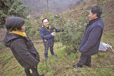 林业专家向四明山镇群众介绍利用香榧开展生态修复的好处。 (唐严 摄) |