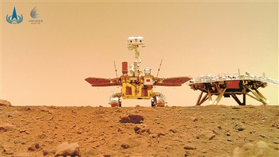 新华社北京6月11日电(记者胡喆)6月11日,国家航天局在京举行天问一号探测器着陆火星首批科学影像图揭幕仪式,公布了由祝融号火星车拍摄的着陆点全景、火星地形地貌、“中国印迹”和“着巡合影”等影像图。首批科学影像图的发布,标志着我国首次火星探测任务取得圆满成功。 着陆点全景图,是火星车尚未驶离着陆平台时,由火星车桅杆上的导航地形相机,进行360°环拍,经过校正和镶嵌拼接而成。图像显示,着陆点附近地势平坦,远处可见火星地平线,石块丰度和尺寸与预期一致,表明着陆点自主选择和悬停避障实施效果良好。 火星地形地貌图,是火星车驶达火星表面后,由导航地形相机拍摄的第一幅地形地貌影像图。图像显示,近处表面较平坦,分布有大小不同的石块,边缘平滑、颜色较浅、呈半掩埋状,较远处有一环形坑,环形坑边缘分布有颜色较深、棱角分明的石块,更远处是几处沙丘。 “中国印迹”图,是火星车行驶到着陆平台东偏南60°方向约6米处,拍摄的着陆平台影像图。图像显示,着陆平台熠熠生辉,国旗鲜红方正,表面地貌细节丰富。 “着巡合影”图,是火星车行驶至着陆平台南向约10米处,释放安装在车底部的分离相机,之后火星车退至着陆平台附近,分离相机拍摄的火星车与着陆平台的合影。图像通过无线信号传送到火星车,再由火星车通过环绕器中继传回地面。 国家航天局局长张克俭表示,航天全线将继续发扬严慎细实、大力协同的工作作风,组织实施好各项科学探测任务,获取高质量科学数据;秉持开放共享、互利合作理念,及时发布科学数据产品,让全人类共享中国航天发展成果;精心论证和实施好后续航天重大工程,推动航天事业高质量发展,为航天强国和科技强国建设作出更大贡献。 我国首次火星探测任务于2013年全面启动论证,2016年1月批准立项。2020年7月23日天问一号探测器于海南文昌成功发射,历经地火转移、火星捕获、火星停泊、离轨着陆和科学探测等阶段,工程任务按计划顺利开展。截至6月11日,环绕器在中继轨道运行状态良好,祝融号火星车在火星表面已工作28个火星日。