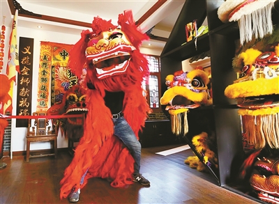 为了参加这次暖场节目遴选,市级非遗项目梅山舞狮传承人沈海迪和15名小伙伴特地编排了一个名为《狮醒东方》的节目。(孙肖 沈琼云 摄) |