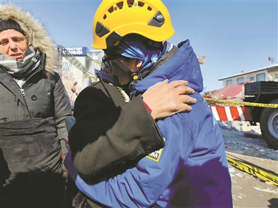 张赛晓与土耳其老人拥抱。(陈庆 供图) 朱建成在救援中。(陈庆 供图) 赴土耳其震区救援的朱建成。(陈庆 供图) 黄海辉父母迎接儿子归来。(苟雯 摄) 记者 苟雯 通讯员 沈 “回到家乡,回到祖国,感觉真好!”张赛晓深吸一口气,眼圈微红。 昨天下午4时50分,铁路宁波站前,宁波鄞州蓝天救援队队员排成一列,拉起横幅,欢迎张赛晓和队友们归来。 “你们是中国好兄弟!”三天前,在土耳其马拉蒂亚纳托利亚农业职业技术高中校门前的连片废墟里,当地的工作人员、救援人员,向启程回国的中国蓝天救援队队员挥手作别。 掌声,经久不息,这是对中国勇士的敬意。 从土耳其时间9日晚上10时35分抵达,直接进入救援现场开始,到14日中午11时10分撤离,108个小时里,宁波鄞州蓝天救援队4名队员和其他中国战友,不分昼夜,扒开层层土石,经历余震不断,不抛弃、不放弃每一个生命。 “宁波鄞州蓝天救援队编入中国蓝天营救二队搜救作业。截至目前,宁波队员参与营救幸存者2名,完成现场罹难者搜救25人。”宁波鄞州蓝天救援队队长陈庆说。 万里之外,火速集结 从马拉蒂亚坐上返程大巴那刻,宁波队员张赛晓发了一段小视频——车辆飞驰,道路两旁已经积起了厚厚的雪,那是土耳其的雪。 回想一周前的那个夜晚,一切好像历历在目。 2月6日晚上,从蓝天救援队总部发来的消息让队长陈庆心头一紧——全国范围召集150名队员,赴土耳其震区参与紧急救援。 听到消息后,张赛晓毫不犹豫地报了名。加入宁波鄞州蓝天救援队5年,这是她第一次跨国救援。 那是一个难以入眠的夜晚。她把即将前往土耳其的事告诉了父母,得到了来自家人的肯定,“他们都很支持我,嘱咐我要注意安全。” 不过,由于女儿住校,所以并没有来得及和她告别,张赛晓便收拾好救援装备准备出发。 次日下午,飞机从宁波栎社国际机场起飞,张赛晓和宁波的其他3名队员舒崇杰、朱建成、黄海辉赴武汉集结。 未曾料想的是,到了武汉后,一道“去和留”的问题被摆在了队员们面前——当天晚上从武汉起飞的航班座位有限,无法一次性载上所有队员。 讨论、犹豫、争取……最终,在总部通盘考虑下,决定分成两支队伍,宁波的队员改道从广州出发。8日凌晨,队员们坐上了从武汉去广州的动车。 2月9日上午6时39分,在等待飞机的间隙张赛晓发了一条朋友圈,“三天两夜没合眼了,等待转机中抽时间眯一会儿。养足精神时刻准备进入灾区。”配图是队员们在机场的椅子上坐着睡着了。 但是他们不知道的是,当他们在万里高空赶赴土耳其灾区的时候,两则新闻先后被推送,“强震已致土耳其、叙利亚两国超1万人遇难”“2月8日19时11分在土耳其发生5.1级地震,震源深度10千米”…… 与时间赛跑,一天只睡4小时 持续不断的余震、零下10多摄氏度的气温……在马拉蒂亚救援的108个小时里,队员们平均一天只睡4小时。 张赛晓被分配到了生命探测组,朱建成和舒崇杰被编入营救组,黄海辉则成为现场安全员,其胸口挂着一个哨子提醒队员们避险。 辛苦自然不必多说,多次参与大型救援的队长陈庆深知,因为多支队伍驻扎,所以驻地不断会有人交接、沟通信息,想要睡得安稳并不容易。 有一天晚上,队员们在驻地暂作休整,突然间被一阵剧烈的摇晃惊醒,“我们以为是等级比较小的余震,但是后来测定出来的结果有5.3级。” 不仅如此,因为物资匮乏,队员们入乡随俗,把面包作为主食,配上一些奶酪和水果,再来一个罐头就算是加餐了。而马拉蒂亚零下摄氏度的低温,让瓶装饮用水变成了“冰坨子”。 “还行!”是记者连线张赛晓时她说得最多的话。每一次向后方回传信息的时候,她很少讲生活上的不便和搜救中的危险。 只是,在和其他队员合力救出被困者的时候,张赛晓还是抑制不住内心的激动——土耳其时间11日凌晨1时41分,一名被困117小时的83岁老人被成功救出。 和张赛晓同一搜索小组的江西人防蓝天救援队一名队员记录下了救援的全过程,“刚开始一、二楼坍塌,被困老人尚能喊话,此后的第二波强震中整栋楼坍塌,老人便没有了音信。” 那个时候,“必须救”成为当地救援队和蓝天救援队队员的共同信念。经过数次探测,最后终于用雷达找到了呼吸信号。 “救人一命,不虚此行,再苦再累都是值得的!”张赛晓感叹道。但她没有说的是,那一天,有的救援队员最长工作时间达到了18小时。 马拉蒂亚的积雪,见证着中国队员的善良和勇毅。 一副手套,跨越万水千山 在新华社一条微博中,有这样一个词条:“土耳其震后救灾现场的中国身影”。这个词条一度跃升至热搜第三位。 这条微博里的图片由国外摄影师拍摄。在他们的镜头里,出现了宁波姑娘张赛晓。 两张照片仅有侧脸,但还是被队长陈庆一眼认了出来。只因废墟里,一抹亮蓝,一顶明黄色的头盔格外显眼。 对于当地居民来说,这抹亮蓝存在的地方也是希望所在,“垮塌的建筑旁边有当地的居民在等待,因为都想看到自己的家人能够被救出来……” 焦灼的等待,只为了每一个生命的奇迹发生。 张赛晓回忆,当时队员们一直在探测,旁边有一位老人的家人被埋在下面,老人一直在流泪。那个时候气温很低,只有零下10摄氏度左右。她看到老人没有戴手套,就把自己的手套送给了她。虽然语言不通,但是她还是拥抱了老人。 让她没想到的是,另一旁的一位当地居民把自己的手套摘了下来,送给了张