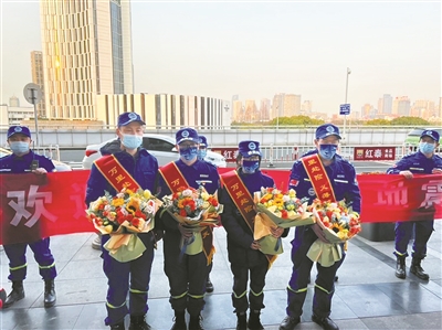| 宁波4名蓝天救援队队员归来受到欢迎。(苟雯 摄) |