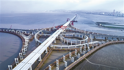 | 杭甬高速复线宁波一期项目滨海互通施工现场。(李全平 摄) |