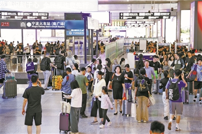 “超长假期”进入尾声,铁路宁波站迎来返程客流高峰。今年,中秋国庆假期的运输期限为9月27日至10月8日,共计12天。自9月27日假期运输启动以来,截至昨日,铁路宁波站已发送旅客超过70万人次。今天,返程客流将达到最高峰,乘坐火车返回宁波的旅客在9万人次左右。