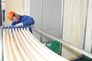 昨天,按国际标准进行浸没式超滤膜生产工艺改造后的江东水厂投入试运行,其日制水能力为20万吨。图为日前在江东水厂新建的膜处理车间内,工人在安装超滤膜。该超滤膜能有效地去除水中的颗粒物及致病微生物。 通讯员 魏光华 摄