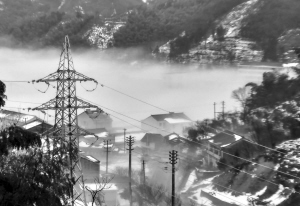 昨天上午,余姚四明山镇的高山上,充沛的暖湿气流使得雾气弥漫,与残存的积雪相映成美景。通讯员 陈开超 摄