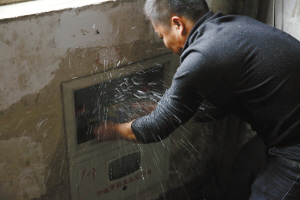 | 维修人员在朱雀社区抢修居民水表。通讯员 张良 摄 |