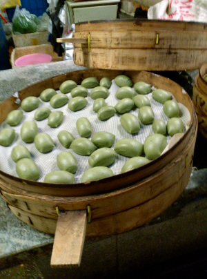 | 新鲜上市的艾青馒头。记者 谢昭艳 摄 |