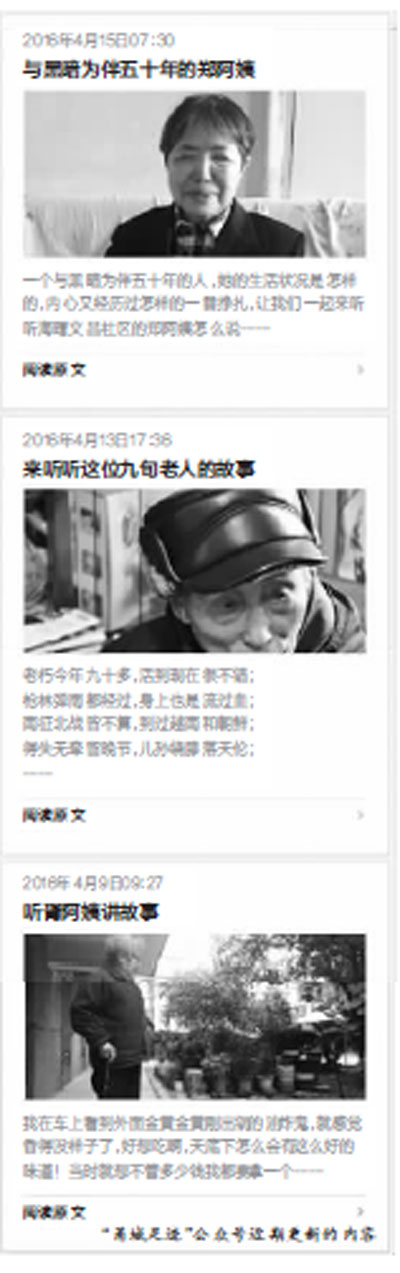 □记者 王思勤 通讯员 张黎升 欧阳恩斌 文/摄 “倾听十分钟”,是鼓楼文昌社区为老人提供陪聊服务的一个项目。这两天人们惊讶地发现,原先《倾听记录表》上只有的寥寥百字,而现在每次都有千字左右的文章,加上发到社区微信上图文并茂的文章,内容一下子丰富了不少。 老人们也很高兴。中宪小区郑佩珍老人说,“60多年了,从来没人这么耐心地听我讲那些经历。” “倾听十分钟”,这一个月究竟发生了怎样的改变? 一拍即合,社区迎来志愿者 “‘倾听十分钟’项目就是聆听、陪聊。”文昌社区的社工胡剑川指着厚厚一沓写满文字的记录表说,她的任务,就是每天给社区独居、空巢老人打电话,倾听日常琐事,记录老人所需,再对接科室满足老人需求。 “每个老人作息的时间不太一样,我经常得掐着点打电话。”一个社工应对200多位独居、空巢老人,无论是时间还是精力,都有些勉强。 文昌社区书记周晓红便联系上了宁波工程学院的大学生志愿者团队,“这个团队的名字叫‘时光故事’,目前一共7人,分工明确,有负责联系、走访记录的,也有负责整理成稿、微信发布的。学生的时间相对宽裕,而他们的创意和图文展示的优势可以把这件事做得更完善。” 走进社区,听老人讲故事 3月底,大学生志愿者第一次敲开了老人的家门。 学生们来到90多岁的王老先生家中。王老先生是抗战老兵,听说有人特地过来聆听故事,高兴不已。在之后一个多小时的闲聊中,王老讲了很多他早年的故事,在大学生们听来,“都很传奇、非常精彩”。 上周,是大学生志愿者第六次进社区走访。记者跟随他们走进中宪小区郑佩珍老人家中。学生张康乐和李赞赞分坐老人左右两边,边听边记录。64岁的郑阿姨思路清晰,将自己的过往与晚辈们娓娓道来:14岁因病失明的痛楚,入学无门的无助,自学盲文的刻苦到工作时的坚持,讲述中处处透着自强、坚毅。 郑阿姨家中,凡是能坐下的地方,都整齐地摆放着盲文书籍,“我还会自己写些文章投稿。”老人的脸上总带着微笑,因为听力下降,偶尔听不清时,她会礼貌地向学生一遍遍地询问。 张康乐被郑阿姨的谈吐深深吸引,还主动请教学习写盲文。“60多年了,从没人这么耐心地听我讲这些经历。”郑阿姨语带激动,得知学生还要将事故整理成微信稿发布,她更吃惊了。 写得用心,赢得居民点赞 这两天,大学生们将两位老人的故事写成了文章:《来听听这位九旬老人的故事》、《与黑暗为伴五十年的郑阿姨》。发到社区微信上后,得到了很多居民的好评。 昨天,记者采访了“时光故事”团队的负责人,宁波工程学院大四学生张康乐。说起与文昌社区的合作,张同学表示,这和他近两年的经历有关。 “在老家,每每遇到村里老人去世,我都会惋惜,感觉这是家乡记忆的逝去。为此,我和发小一起,续写了村里张姓家族的族谱,拍摄记录了村里40余位老人的故事,今年寒假还组织了家乡近300族人拍合影,希望能留住这些记忆。” “回到学校后,我想是不是也能记录下宁波老人的一些故事。和身边的同学一说,他们都很有兴趣,之后就成立了‘时光故事’团队。”张康乐说,平时,他们会到学校附近的老年活动中心走走,和那里的老人聊聊。这次和文昌社区的合作,更是一次好的机会。 “甬城足迹”,希望让历史留存 “其实,我们只是做了很小的事情,但老人们的热情让我们非常感动。”张康乐说,他还记得那次去王老先生家,老人因为早年腿部受伤,行动不便,平时很少走动。可是他们要离开时,老人却坚持从座位上站起来亲自送到门口,还一直说“你们能来,我真的很高兴”。 目前,“时光故事”团队的计划,是每周去社区走访两次左右。“我们为此还专门设置了一个叫‘甬城足迹’的微信公众号,希望能将老人们的故事、足迹,记录下来、留存下去。”张同学说。 对此,鼓楼街道副主任吴君表示,有了学生团队的支持,但社工的倾听工作也不会放下。在学生倾听、陪聊之后,社区也会组织回访。“如果获得居民的认可,街道还会在其他社区中逐步推广。”