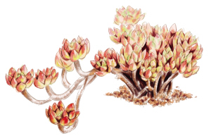 多数危害景天科和菊科的多肉植物,常吸食植物幼嫩部分的汁液,引起多肉生长衰弱,蚜虫分泌物还招引蚁类。危害初期用80%敌敌畏乳油1500倍液喷洒。