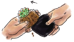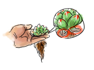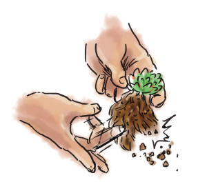 如果多肉植物生长健壮,根系上会缠绕许多土壤,多余的土壤可以用手轻轻弹掉。用“弹”这种方式抖土,可以将根系的伤害缩减到最小。