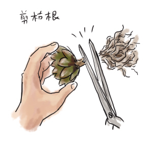 剪去木质化的、发黑的老桩,这样的老桩如果直接入盆种上,百分之八九十都会腐烂掉。