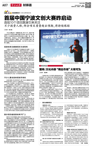首届中国宁波文创大赛昨启动
