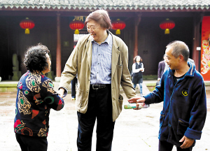 昨天,当代著名文化人冯骥才回到宁波,今天他将出席在其慈城老家举行的冯骥才祖居开馆仪式。冯骥才曾多次回故乡,并在各种题材的作品中描写他对故乡的眷恋。图为在慈城县衙外,冯骥才与住在他祖居边上的冯氏族人笑呵呵地互叙乡情。