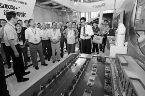 | 昨天中午,数位院士参加智慧城市论坛后,来到国际会展中心,为参展企业出谋划策。 记者 徐能 摄 |