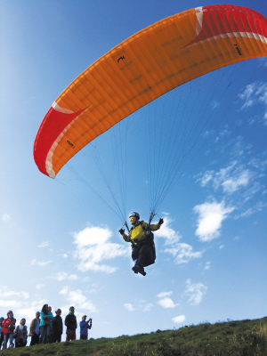 刚刚过去的双休日里,2016全国滑翔伞定点联赛宁波站在慈溪龙山镇伏龙山举行,来自全国各地近40名滑翔伞高手进行了定点着陆赛,4名宁波本土选手参加了这次比赛。记者 胡龙召 摄