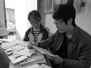 | 韩亚丽(右)正和女儿一起看孩子们的来信。 |