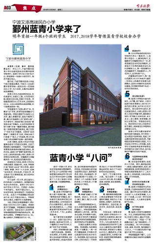 本报讯(记者 徐叶 通讯员 薛丛川) 昨天上午,宁波市鄞州蓝青小学开办新闻发布会在鄞州蓝青学校举行。蓝青小学计划于2017年开办,首批招收一年级4个班的学生,每班不超过36人。 据介绍,宁波市鄞州蓝青小学是宁波日报报业集团、宁波天工实业和鄞州蓝青学校一起创办的一所高端民办小学,为六年制,由鄞州区教育局直属管理。 蓝青小学总占地面积约90亩,东临甬新河,西靠天工路,北至首南东路,毗邻天宫庄园,环境十分优美。学校建筑面积为5.3万平方米,总投资约3亿元。无论占地面积还是投资额,在宁波都是首屈一指。 学校建筑为“民国+欧式”风,鸟瞰呈“回”字形,讲求的是地域融合与美感呈现。学校注重细节中体现人文关怀,融入智慧环保、绿色节能等元素,竭力打造建筑上的“蓝青五韵”。为方便学生,校园环境力求体现“教育综合体”的概念,比如学校将图书馆“分解”在每一幢教学楼里,教学楼每一层都有配套的阅读区,真正实现了“书在手边”的愿景。在彰显“运动精神”、“高雅艺术”方面,学校为孩子们准备了“高大上”的设施,努力打造全省乃至全国硬件设施一流的校园。 记者了解到,蓝青小学实行的是董事会领导下的校长负责制,目前已聘请浙江省特级教师、宁波市首届教育管理名家培养对象沈斌为校长,签约12年。蓝青小学“背靠”蓝青学校,在办学上具有明显优势。同时,蓝青小学师资队伍结构合理,在编教师与非编教师各一半,组成灵活的教师团队。 沈斌校长介绍说,蓝青小学定位为精品教育、高端办学。未来,学校将打造“阅读与运动”两大特色,做好“课程、智慧、评价”三大支持,实施“双师协同、学科负责、开放办学、项目招标”四大管理制度,努力培养优秀的蓝青学子。 对于这样一所小学,家长最关心的自然是什么时候招生。按照新闻发布会公布的信息,蓝青小学计划于2017学年正式开办,先招收一年级4个班的新生,每班不超过36人。从2018学年起,每年招收的一年级将达6个班。未来六个年级满额后将达到36个班,总计不超过1296人。学校宿舍为公寓式,半数学生可选择寄宿。 目前,学校还在积极筹建中,预计明年三四月份正式开工建设。考虑到孩子们的健康,学校建成后会晾晒通风一段时间,因此在2017、2018学年,学校将暂借蓝青学校的校舍办学。借校开办期间,学费暂定为5万元一年。搬入新校后,学费暂定6万元一年。 蓝青小学“八问” 面对一所新小学,家长肯定有很多疑问需要解答。孩子会上什么样的课?学校食宿情况具体如何?学生毕业后升学方向怎样?记者整理了八个关于蓝青小学的重要问题,为您解疑释惑。 1 建筑设计 有哪些亮点? 答:蓝青小学的硬件会给人留下深刻印象。体现“教育综合体”的概念,每一年级学生拥有相对独立的教育功能区,又有年级共用的公共教育单元。采用大教室与宽走廊形式。一二年级教室使用面积达98平方米(实际面积,下同),走廊总宽度4米。 每个教学综合体楼群(2-4层)设置开放式学生阅读区,每层160平方米,三个楼群共计1440平方米,打造“书在手边”的氛围。 同时,学校将配置大量一流的文体设施:篮球馆、羽毛球馆、乒乓球馆、壁球馆以及4块室外篮球场、3块室外排球场、2块室外网球场。设计配置300米6道室外田径场,田径场看台采用绿化坡带形式设计。除常规的美术、音乐、书法教室外,学校还会配套1个小剧场、1个排练厅、5个与排练厅配套的用房、1个形体房、1个舞蹈房和12个琴房。 2 课程设置 有哪些特色? 答:构建“卓越六力”课程体系,即品力、学力、活力、脑力、魅力、魄力六大领域课程。 所有国家课程校本化。在扎实推行国家基础课程的基础上,对每项国家基础课程进行二次开发,进行校本化实施,并在课表中呈现。比如语文学科的主题阅读课、数学学科的思维拓展课、美术学科的APT创意课等。 用课时支撑两大特色课程。悦读课程:包含晨间诵读、午间默读、一周一次的主题阅读课,平均每天学生阅读的时间在50分钟左右。悦动课程:每天运动100分钟,分别为每天一节体育课、每天上午20分钟的课间操运动时间、每天下午40分钟的全员运动时间。 每天一节主题化特色大课。每日安排一个主题(50分钟)的大课,有主题阅读课、戏剧课、俱乐部课程、班本课程等。 3 德育教育 有哪些措施? 答:德育教育课程的核心理念是增强孩子的价值感和归属感,表现为七个具体指标:我能行、我有价值、我有影响力、我会自省、我会合作、我会负责、我会选择。 为保证这一课程全面实施,蓝青小学将会在三个方面作出全新改变:建立双师协同制(即每个班配两名导师),与专业机构合作,全面系统地培训导师学习;建立从儿童视角出发的德育评价体系,帮助孩子正确地认识自己,激励成长;开展儿童成长研究,为学校开展科学、系统的情商课程提供最基本的保障。 4 师资如何? 答:公办学校或者其他民办学校的生师比一般是19:1,蓝青小学是12:1。教师结构中,在编教师与非编教师各占一半,前者选调自区内外的优秀教师,后者来自于优秀的高校毕业生及社会精英人士。第一批选调的12名在编教师中,特级教师1人、市名师1人、区学科骨干3人。 在董事会的支持下,第一批15名教师(含3名非编教师)提前一年到位,4名教师全职参与前期筹办,其他11名教师在其他岗位锻炼,所有教师将进行长达一年的办学前培训。 5 招生